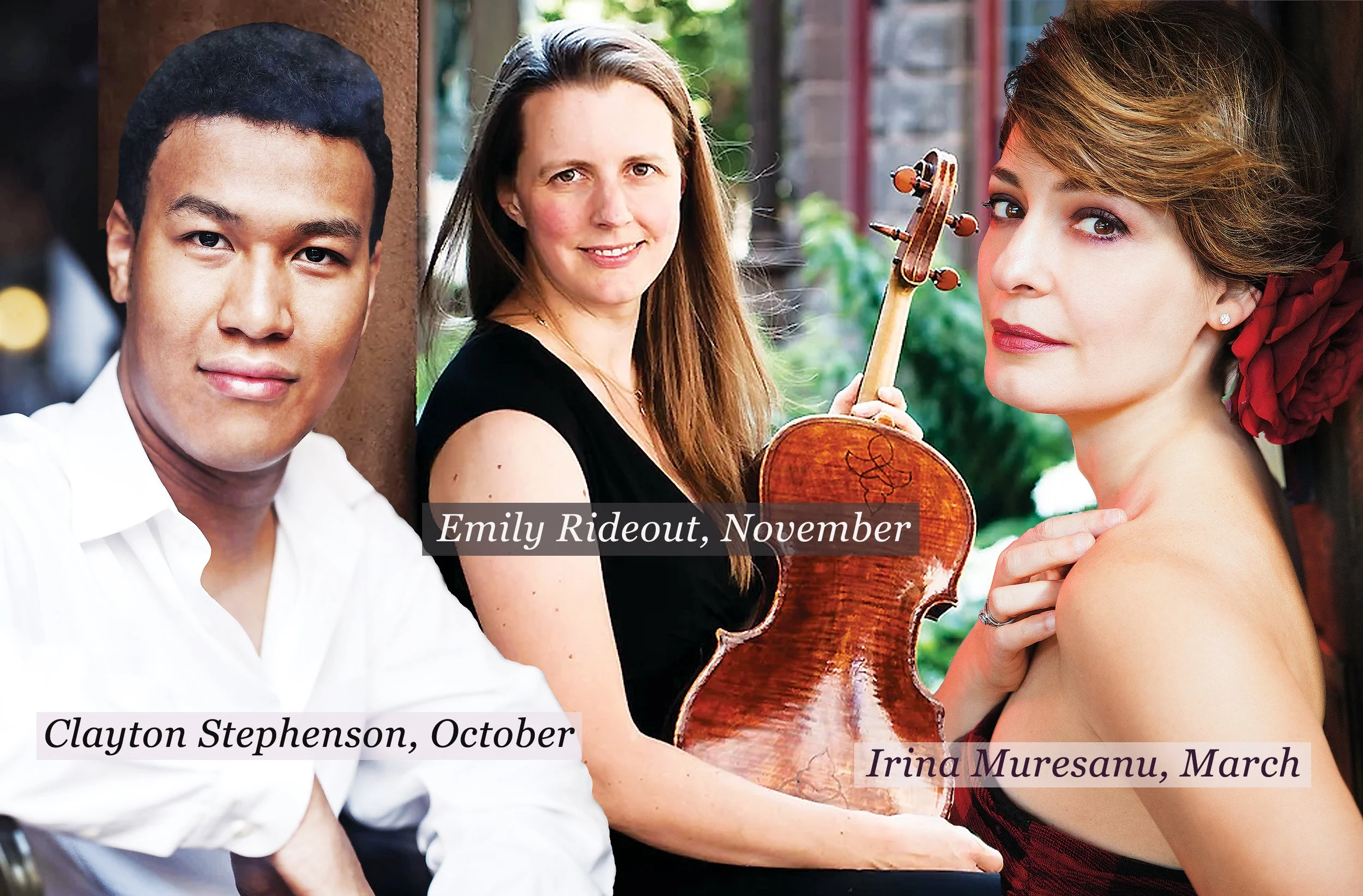 The season opens in October with award-winning Van Cliburn pianist Clayton Stephenson performing Sergei Prokofiev’s Piano Concerto No. 3. Two new soloists will join us later in the season: our very own Principal Violist Emily Rideout in November performing Giya Kancheli’s Styx, and Romanian violinist Irina Muresanu in March performing Jerod Impichchaachaaha' Tate’s Hattak Hiloha Violin Concerto.